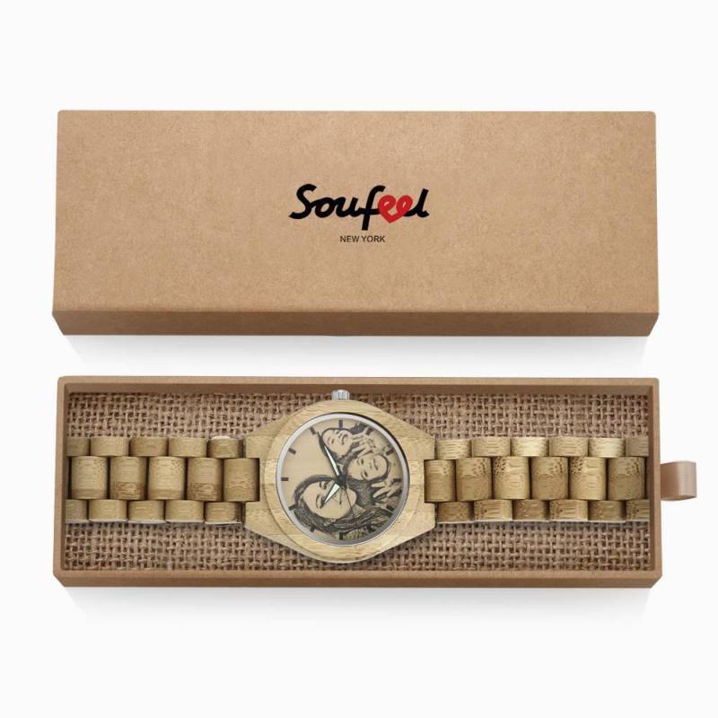 Men's Engraved Bamboo Photo Watch Wooden Strap 45mm