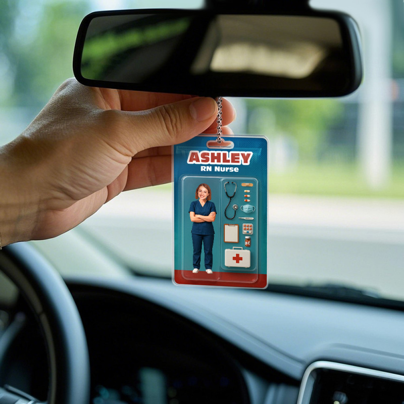 Custom 3D Effect Action Figure Customizable Head Packaging Toy Box Style Art Gift Personalized Acrylic Car Hanger Nurses Day Gift for Nurse