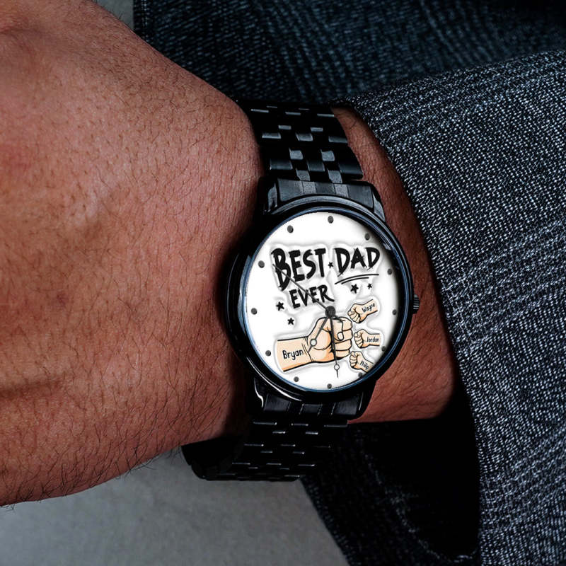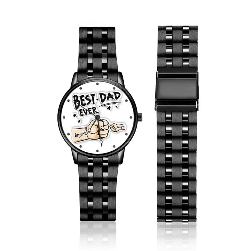 Custom Engraved Watch Men's Black Alloy Watch Holding Hands Bracelet Father's Day Gift for Dad