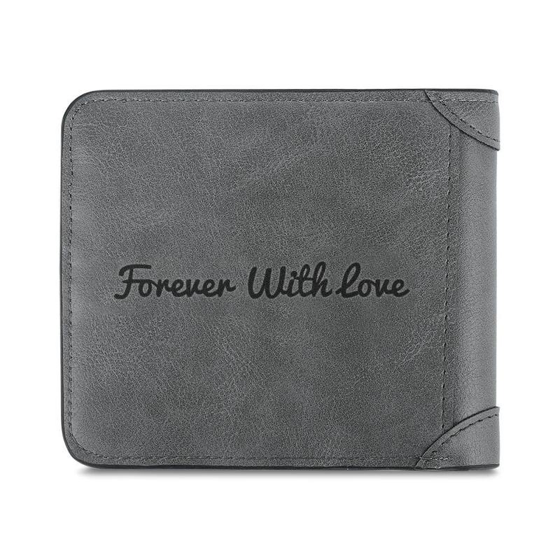 Custom Photo Engraved Wallet Grey Leather Men's Wallet