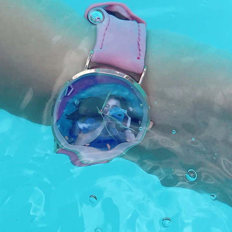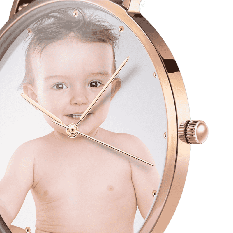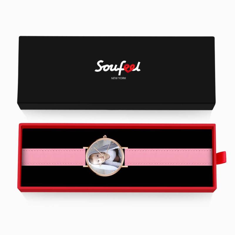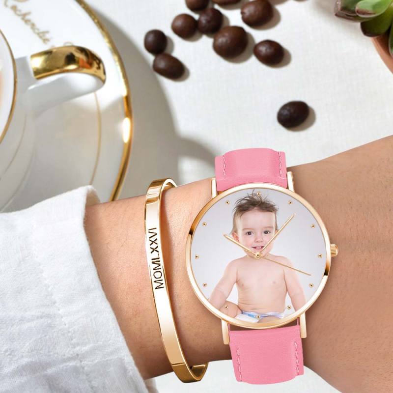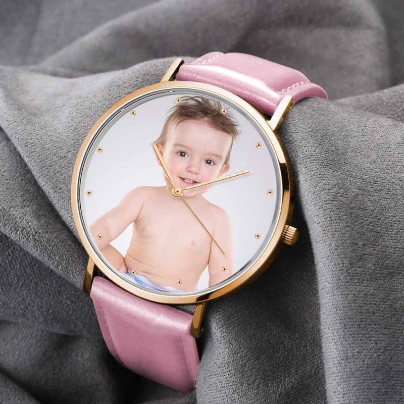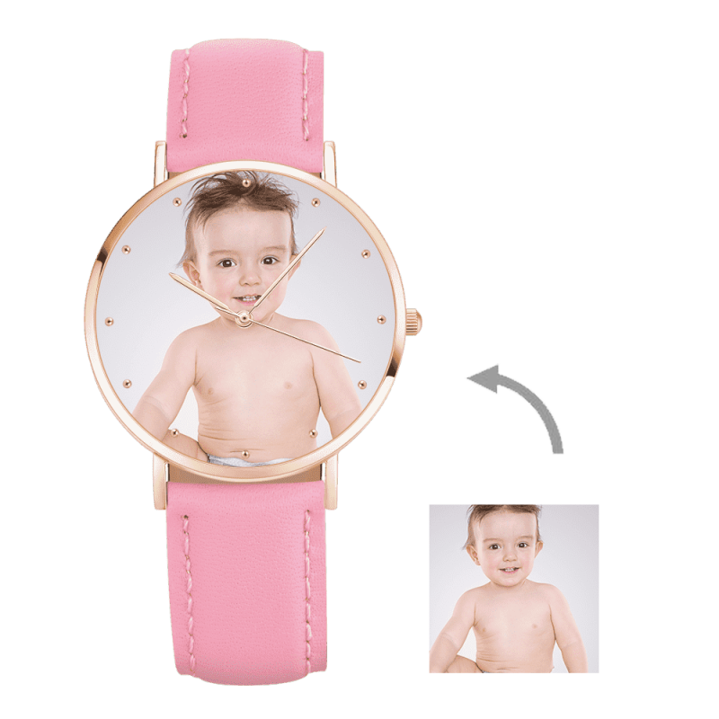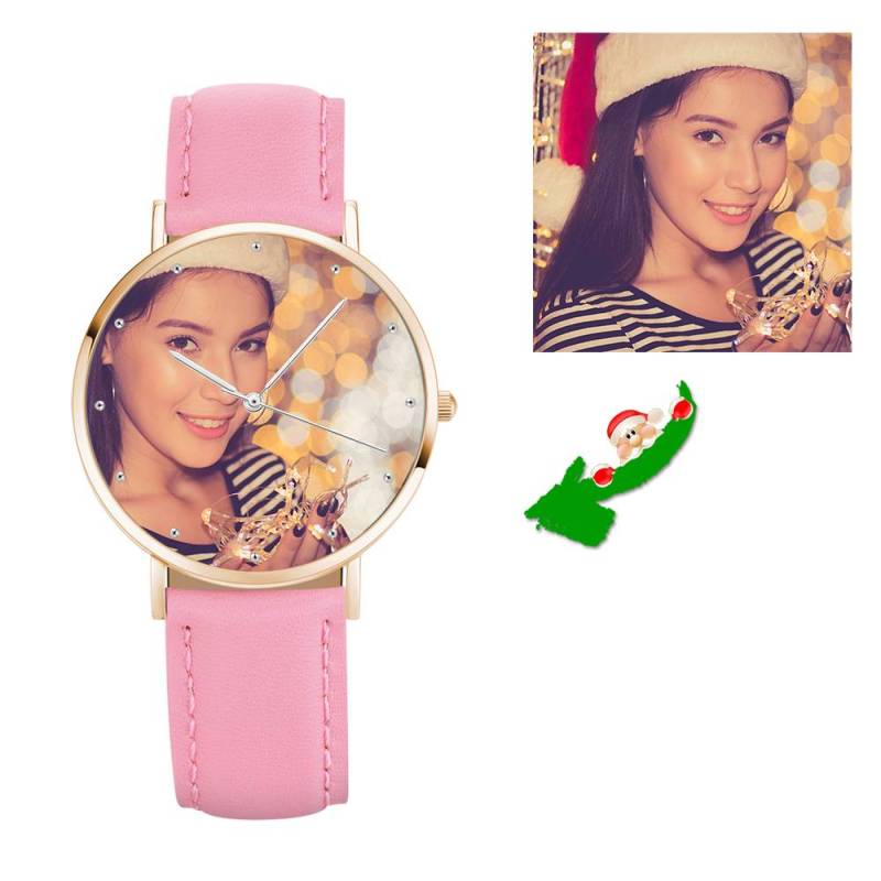 Women's Engraved Rose Goldtone Photo Watch Pink Leather Strap 36mm