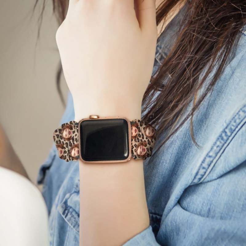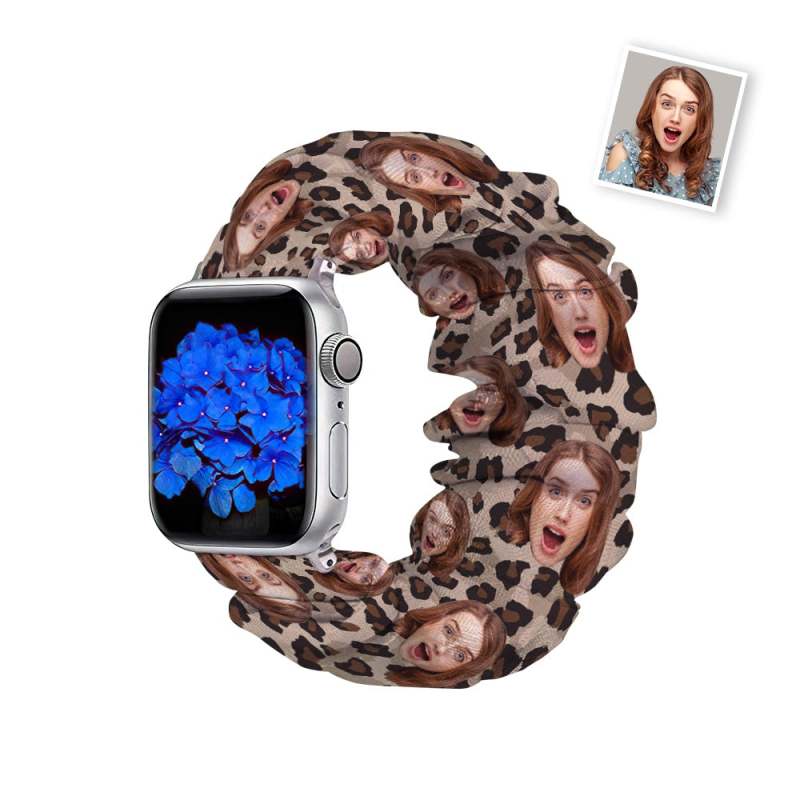 Custom Scrunchies Watch Band with You Face Leopard Print Watch Bands Gifts for Her