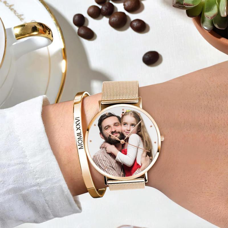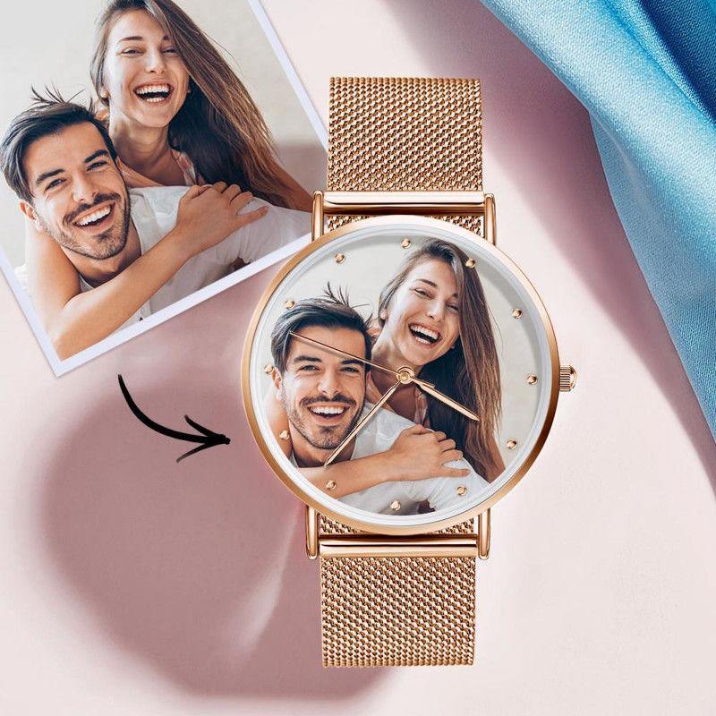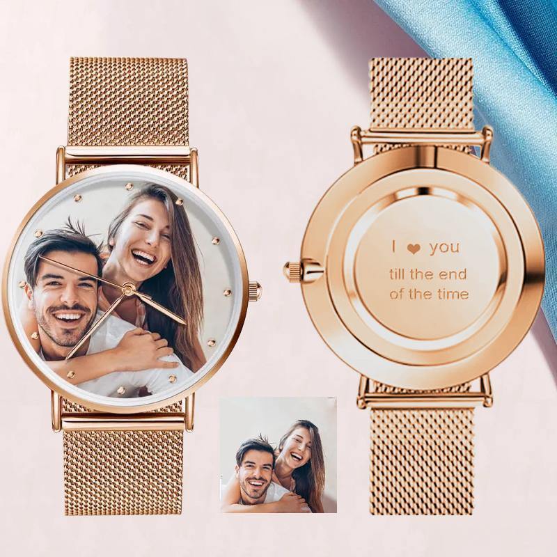 Gift for Men Anniversary Gifts Unisex Engraved Rose Gold Photo Watch