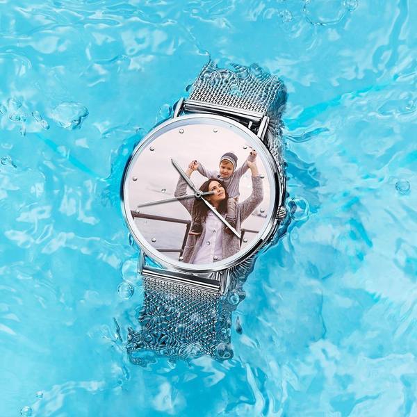 Engraved Photo Watch Alloy Bracelet Strap Silver 36mm - Women's