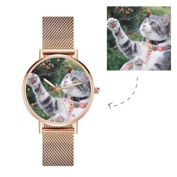 Engraved Photo Watch with Luminous Pointer Rose Gold Alloy Bracelet Photo Watch 36mm - Women's