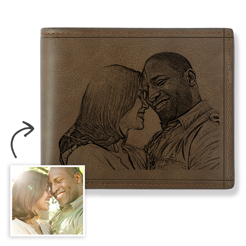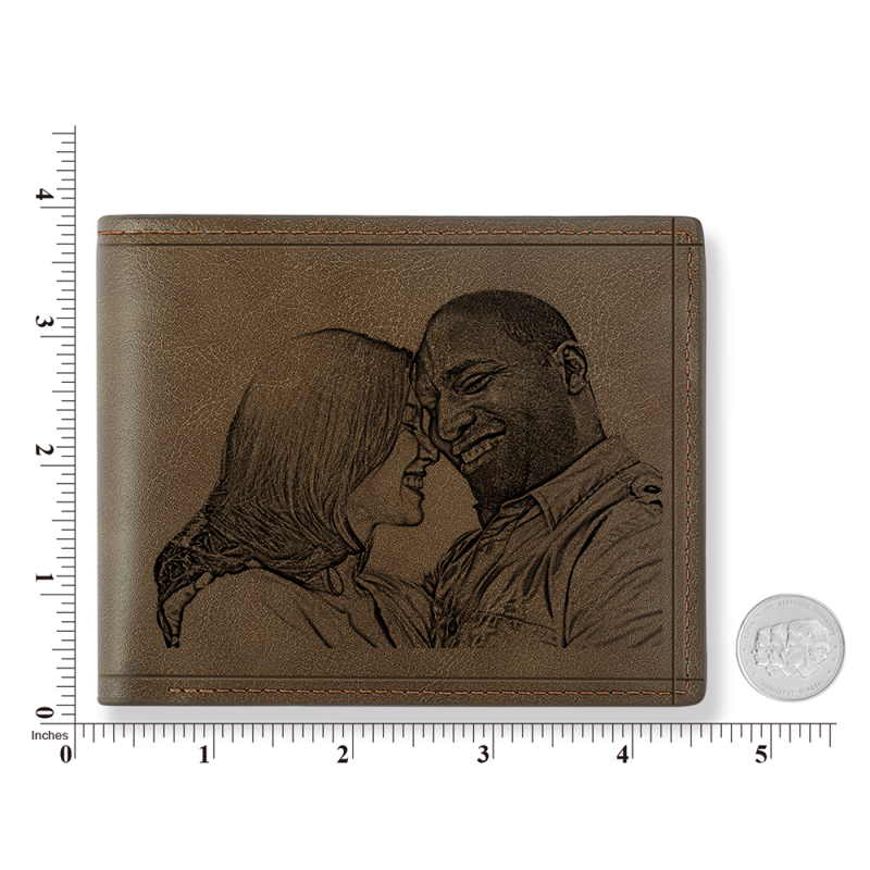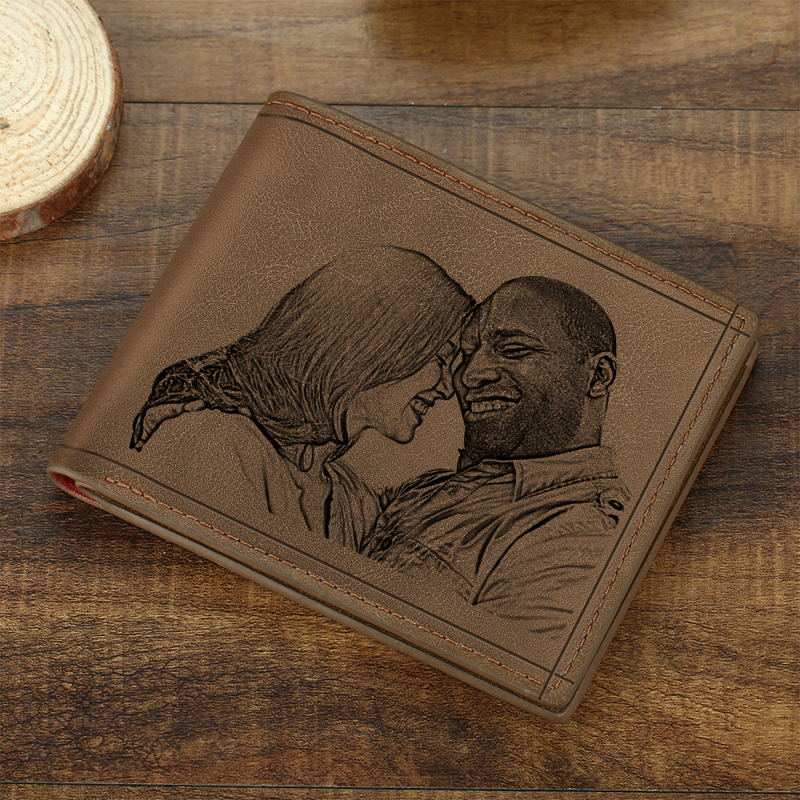 Men's Custom Photo Engraved Wallet Brown Leather For Husband