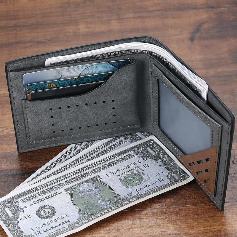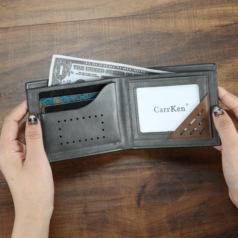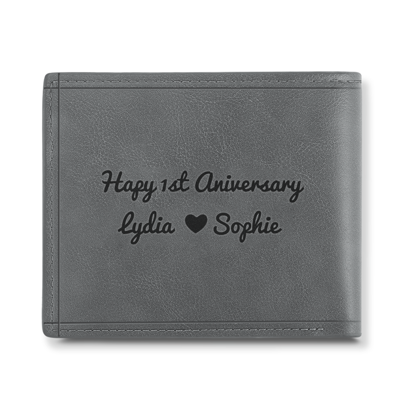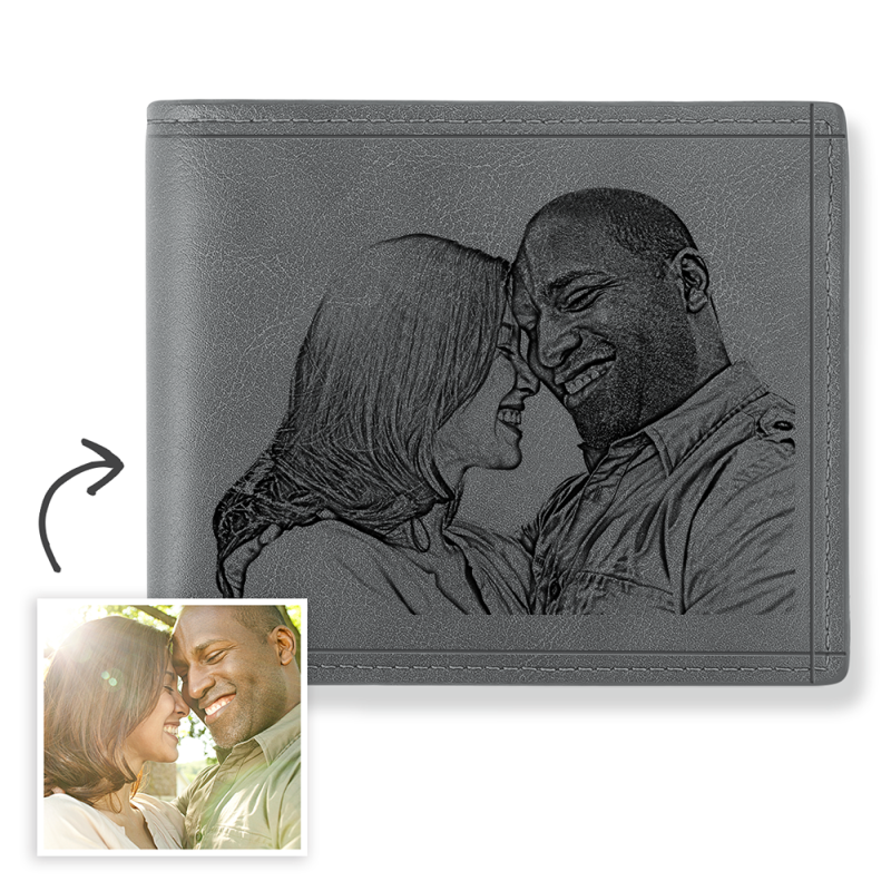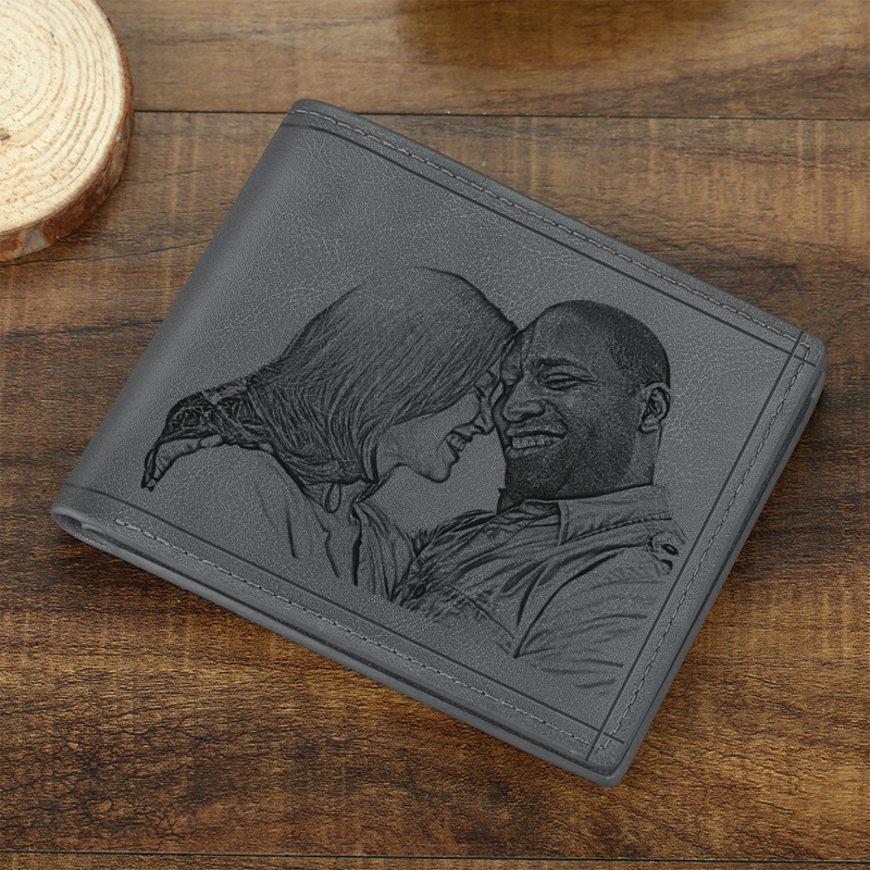 Men's Custom Photo Engraved Wallet Grey Leather Wallet