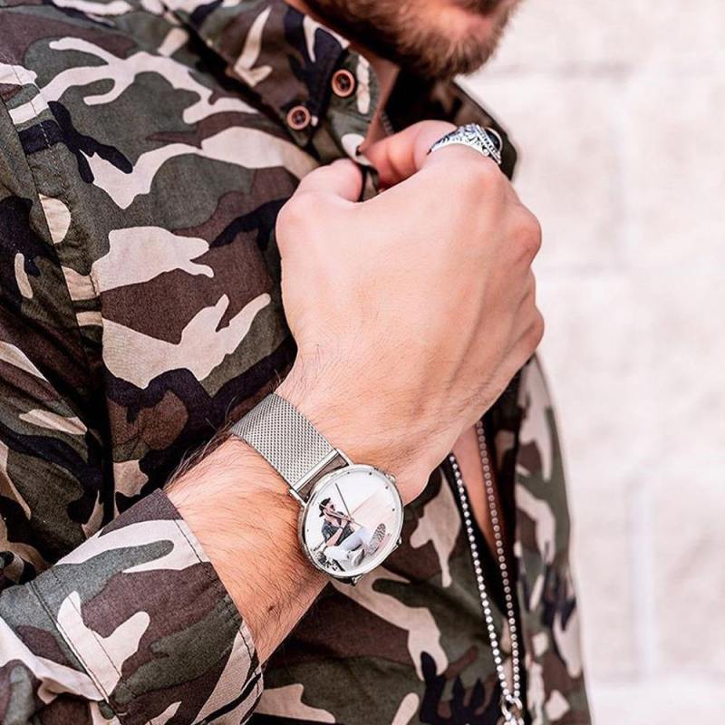 Men's Engraved Alloy Bracelet Photo Watch 40mm