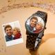 Men's Engraved Black Alloy Bracelet Photo Watch 38mm