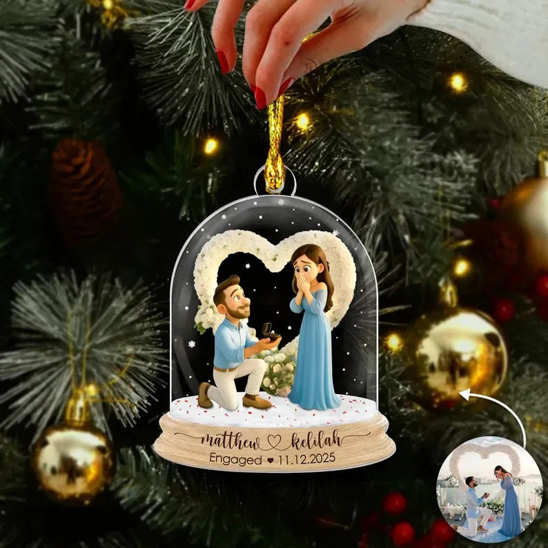 Personalized First Christmas Engaged Ornament, Acrylic Photo Keepsake, Best Christmas Gift for Couple