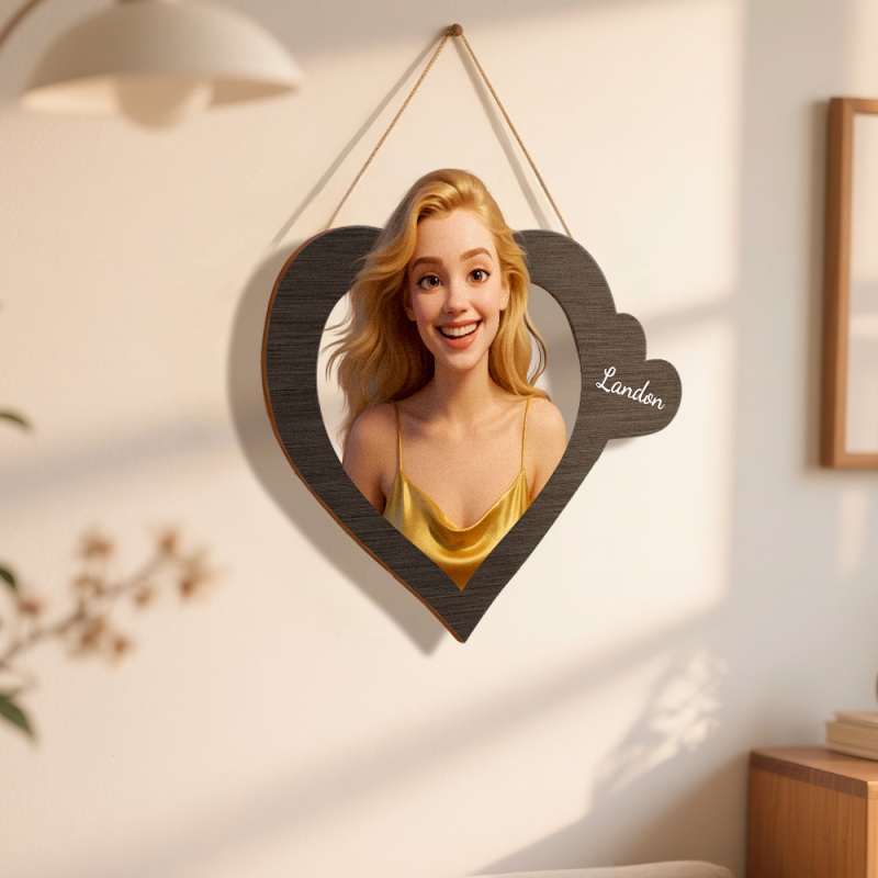 Personalized Pixar Cartoon-Style Wooden Family Name Heart-Shaped Photo Frame Best Anniversary Birthday Family Holiday Gift