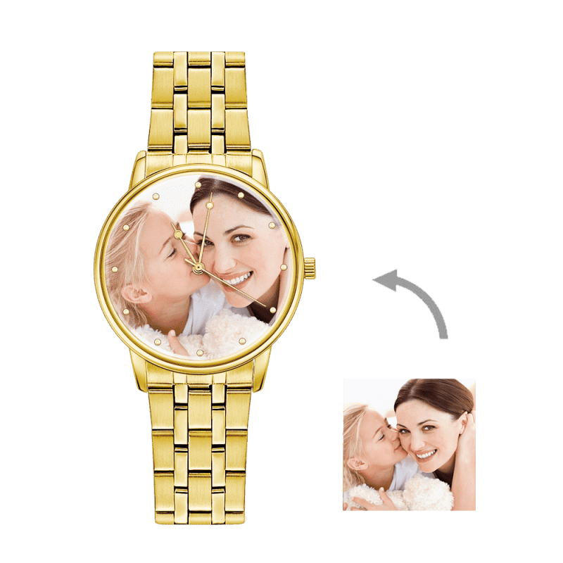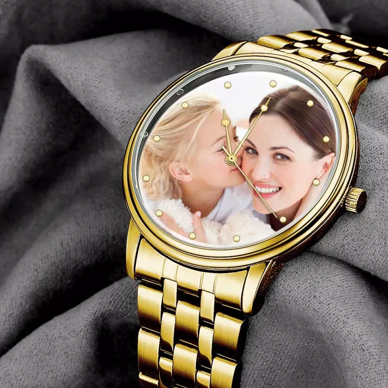 Engraved Gold Alloy Bracelet Photo Watch 40mm Best Gift for Mom