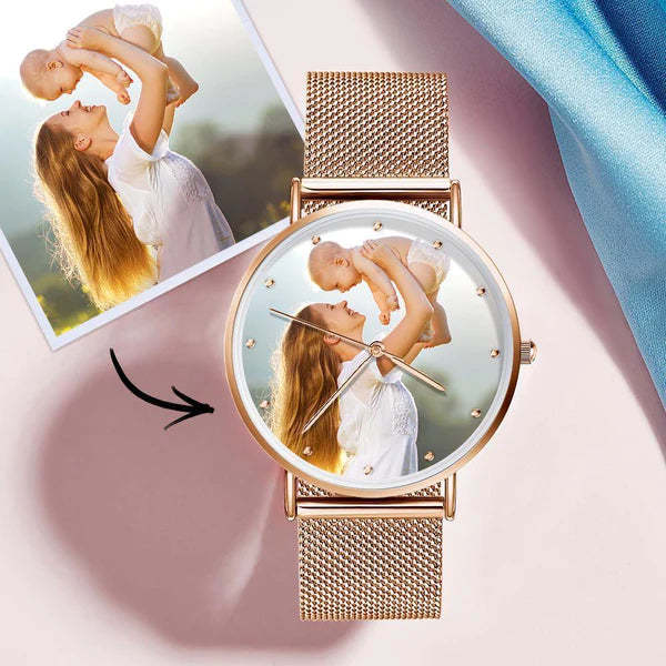 Women's Engraved Rose Gold Alloy Bracelet Photo Watch 36mm