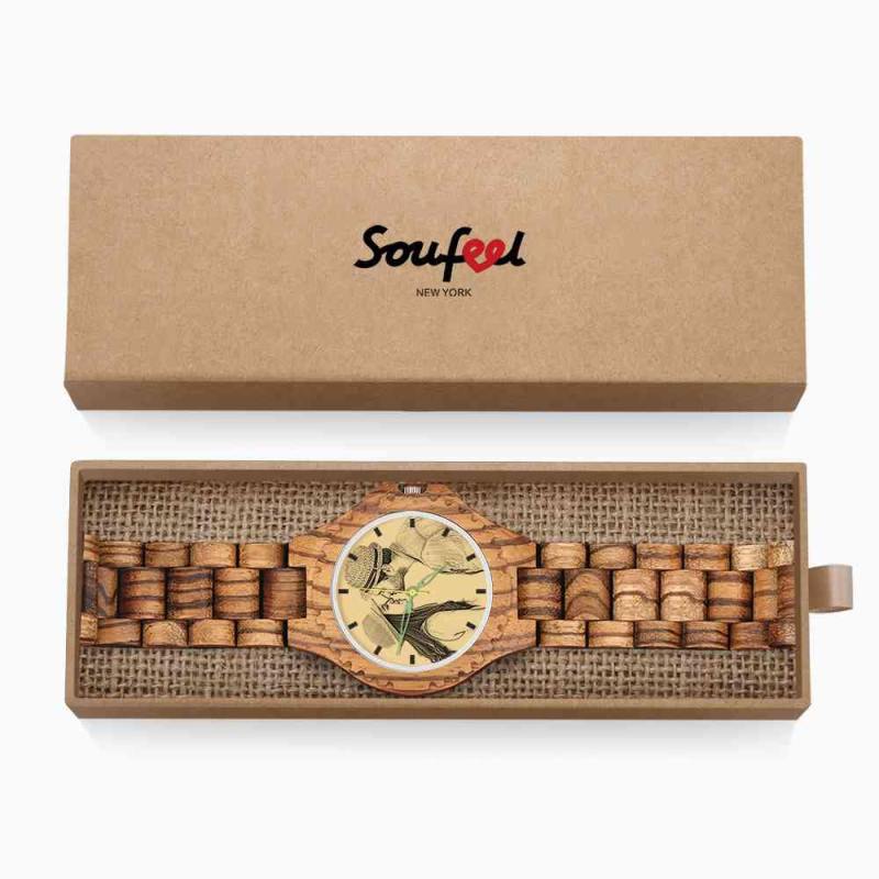 Men's Engraved Wooden Photo Watch Wooden Strap 45mm