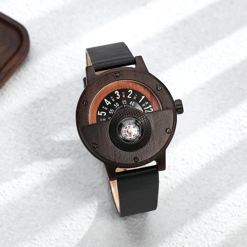 Custom Engraved Watch Handmade Compass Wood Watch for Men