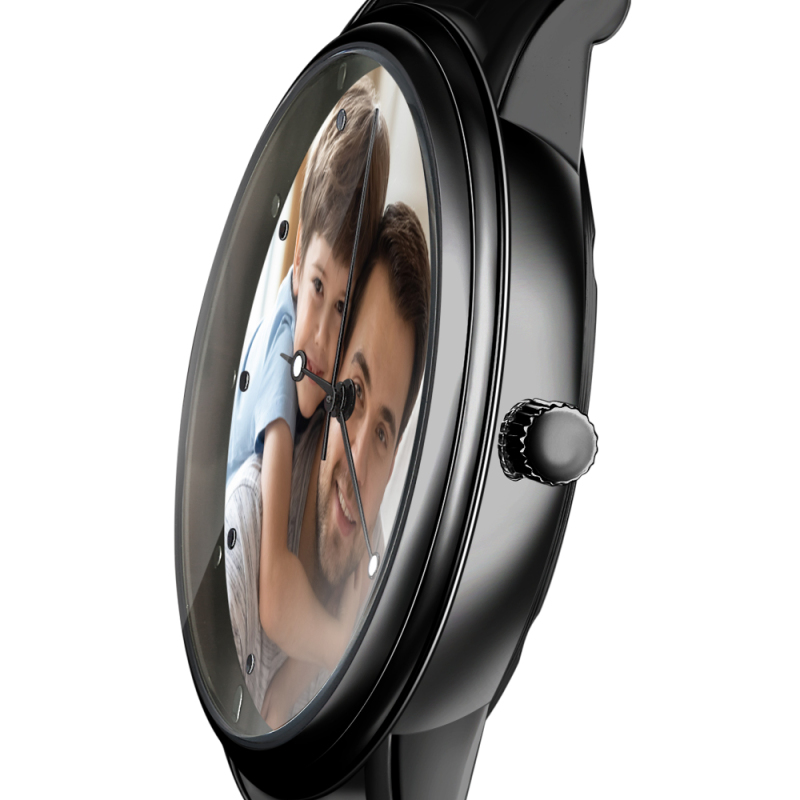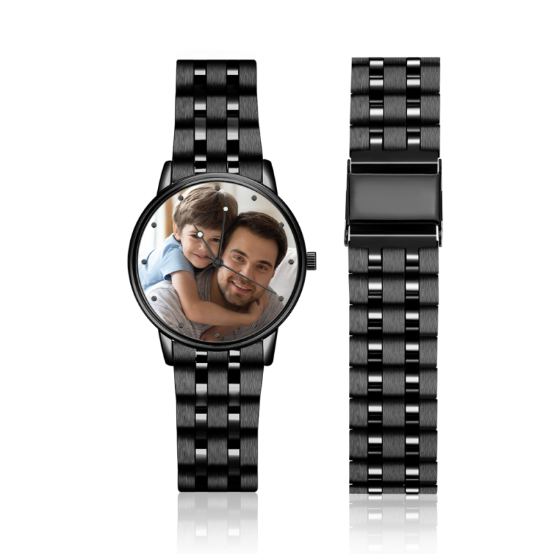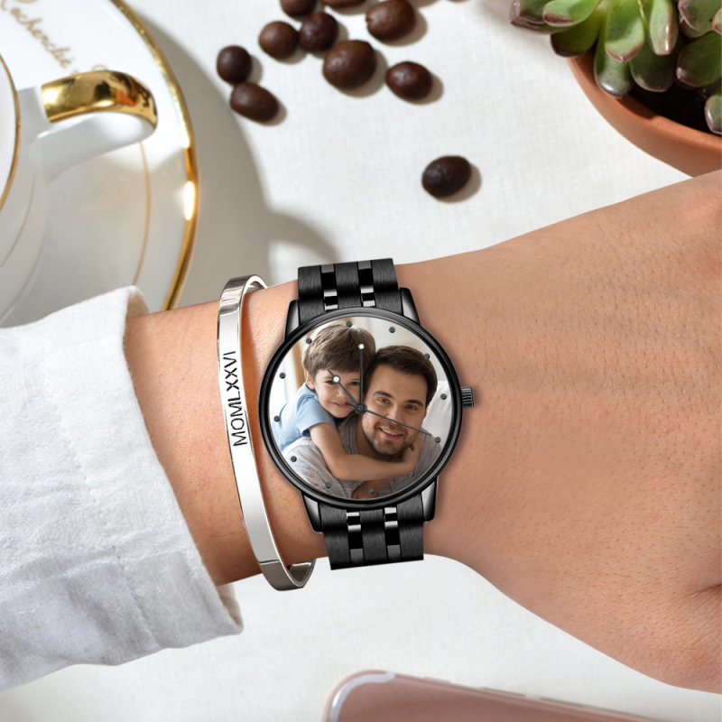 Custom Photo Watch Men's Black Alloy Bracelet Holding Hands Engraved Name Watch Father's Day Gift For Dad