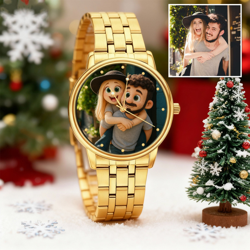 Custom Pixar-Style Plush Portrait Watch|Personalized Cartoon Photo Watch|Unique Gift for Family, Couple, Friend