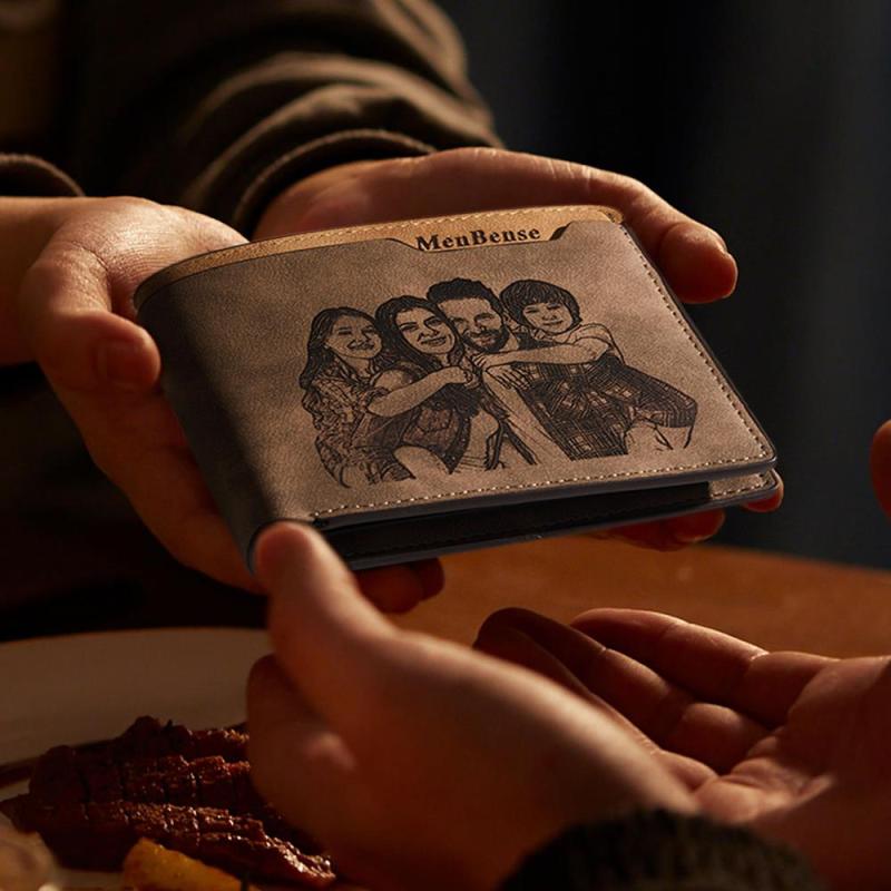 Men's Custom Photo Engraved Wallet Short Wallet Coffee