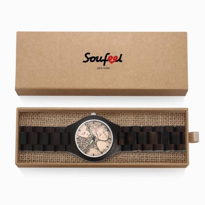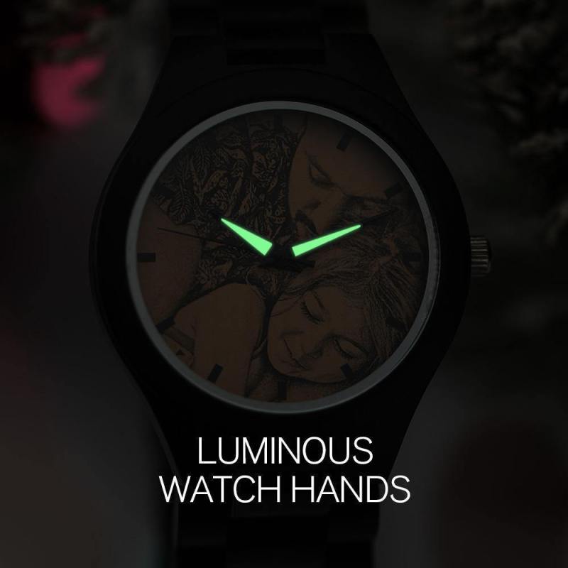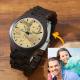 Men's Engraved Wooden Photo Watch All Black Ebony 45mm