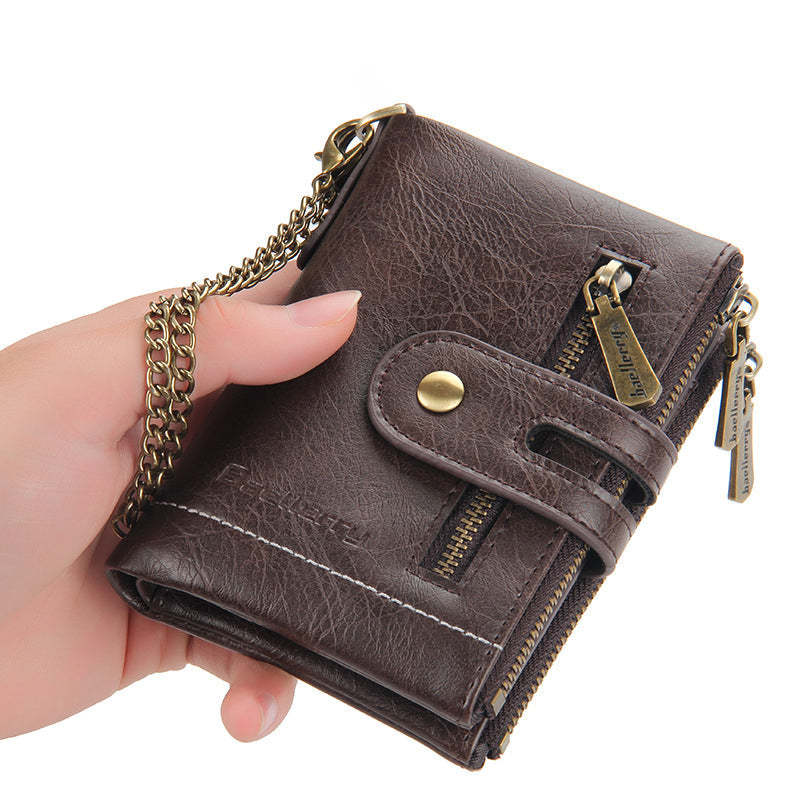 Men's Leather Short Wallet Double Zipper Coin Wallet Gift for Men
