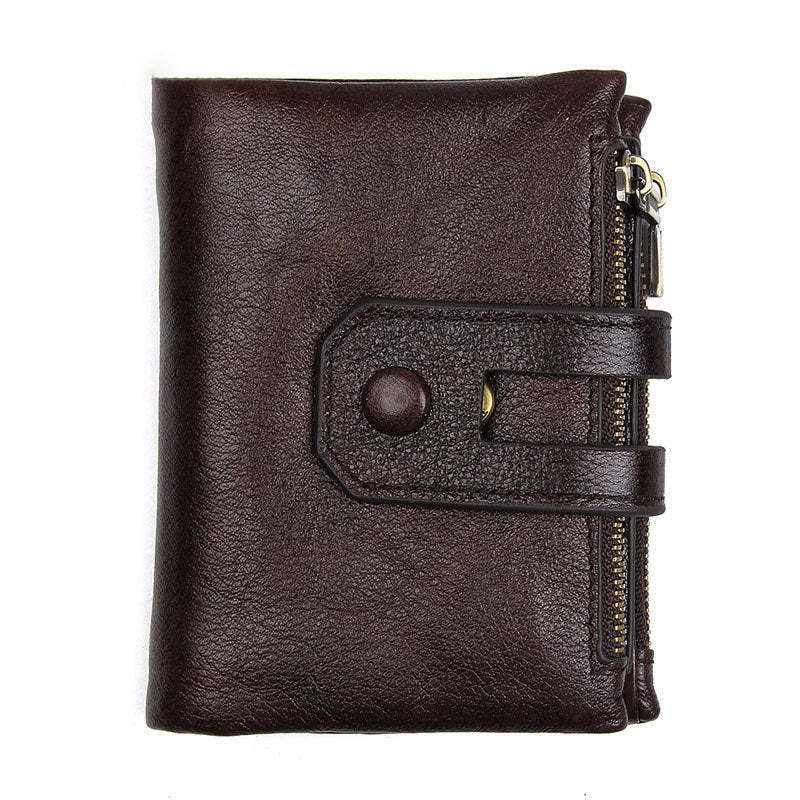 Men's Real Leather Short Wallet Double Zipper Card Bag Gift for Men