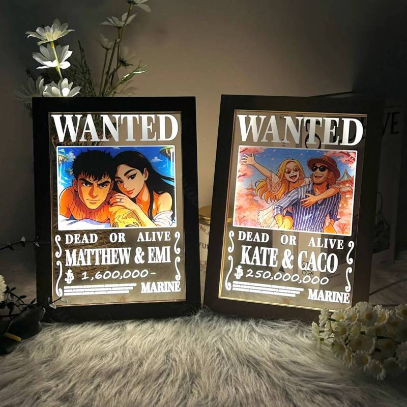 Personalized Anime Wanted Couple Portrait Led Light Frame