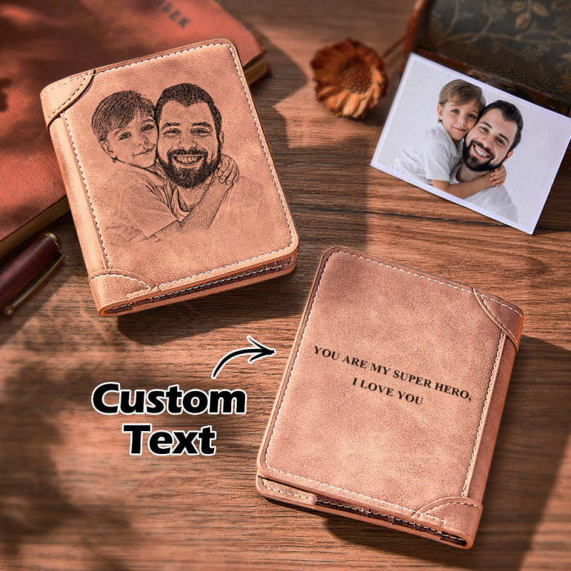 Personalized Photo Leather Men's Short Wallet With Engraving Gift for Men
