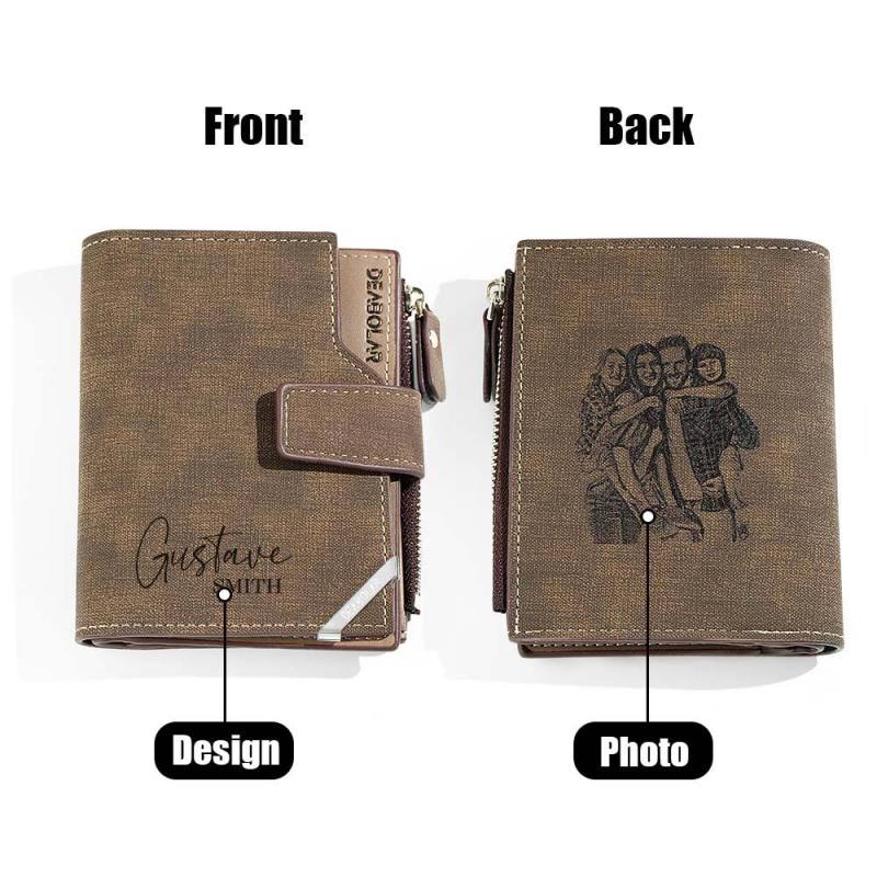 Personalized Photo Men's Foldable Leather Wallet with Text Father's Day Birthday Gift for Him